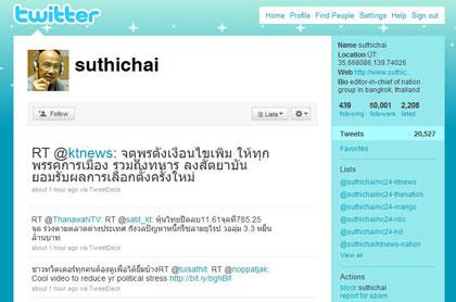 ภาพ ด้วยยอด followers กว่า 4 หมื่นคน ของ@ suthichai สุทธิชัย หยุ่น ทำให้ทวิตเตอร์ของเขาติดอันดับแรกของทวิตเตอร์ที่มีคนเมนชั่นมากที่สุด