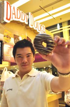 “ตอนแรกที่อยากทำร้านผมก็มอง Krispy Kreme ไว้เป็นแรงบันดาลใจ” ปีเตอร์ ในชุดโปโลปักโลโก้ของร้านที่เขาสวมเป็นประจำเมื่อต้องพบสื่อเล่าถึงจุดเริ่มต้นของ Daddy Dough