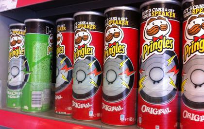 เท่านี้ยังไม่พอ จะเป็นวงได้ ก็ต้องมีเครื่องเสียง วิธีคือ นำฝากระป๋อง สะสมให้ครบ 3 ชิ้น ส่งไปแลก Speaker ขนาดกะทัดรัด ที่สามารถเสียบลงไปในกระป๋อง Pringles ได้พอดี จับกระป๋องเปล่ามาเป็น ลำโพง มันส์ๆ ได้เลย ไม่ต้องทิ้งกระป๋องหลังจากที่กินหมดแล้ว ให้เปลืองทรัพยากร