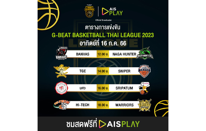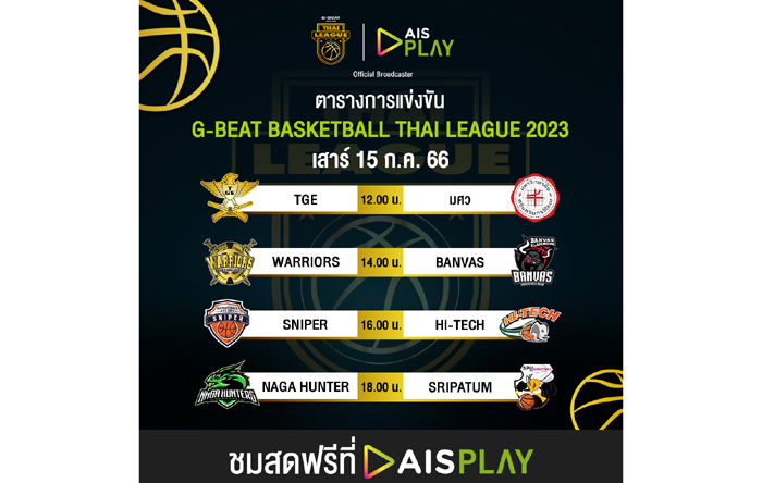 AIS PLAY ยังคงตอกย้ำความเป็นศูนย์กลางด้านคอนเทนต์กีฬาชั้นนำทั้งในประเทศและระดับโลก ล่าสุดได้ผสานความร่วมมือกับ สมาคมกีฬาบาสเกตบอลแห่งประเทศไทยเดินหน้าถ่ายทอดสดการแข่งขัน Basketball Thai League 2023 หรือบาสเกตบอลไทยลีก บาสเกตบอลอาชีพสูงสุดของไทย ให้แฟนบาสเกตบอลชาวไทยได้รับชมฟรีทุกเครือข่าย แบบจัดเต็มทุกแมตช์ทั้งชมสดและรีรัน ผ่าน AIS PLAY ในทุกช่องทาง ประเดิมการแข่งขันนัดแรก 15 กรกฎาคม เวลา 12.00 น. เป็นต้นไป