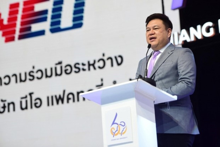ผศ.ดร.ธัญญานุภาพ อานันทนะ รองอธิการบดีมหาวิทยาลัยเชียงใหม่ ด้านการบริหารนวัตกรรม วิเทศสัมพันธ์ พันธกิจสากล และการสื่อสารองค์กร กล่าวว่า “ด้วยวิสัยทัศน์ของมหาวิทยาลัยเชียงใหม่ในการเป็นมหาวิทยาลัยชั้นนำที่รับผิดชอบต่อสังคมเพื่อการพัฒนาที่ยั่งยืน ด้วยนวัตกรรม การร่วมมือกับ ‘นีโอ แฟคทอรี่’ ครั้งนี้นับเป็นก้าวสำคัญในการพัฒนางานวิจัยและนวัตกรรมให้สอดคล้องกับความต้องการของตลาดมากขึ้น รวมถึงการพัฒนาแนวความคิดของคณาจารย์ นักวิจัย และนักศึกษาให้เกิดการบูรณาการทั้งในเชิงวิชาการและในเชิงการทำธุรกิจเพื่อเสริมสร้างศักยภาพการแข่งขันในตลาด ส่งเสริมระบบนิเวศในการวิจัยและพัฒนาเพื่อก่อให้เกิดประโยชน์อย่างแท้จริงต่อไป”