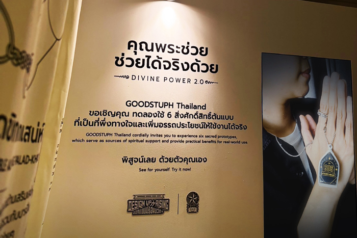 เริ่มต้นขึ้นแล้วกับ Bangkok Design Week 2025 หรือเทศกาลออกแบบกรุงเทพฯ 2568 อีเวนต์สร้างสรรค์ต้นปีของชาวกรุงเวียนกลับมาอีกครั้ง พร้อมกับคอนเซปต์ใหม่ ‘Design Up+Rising: ออกแบบพร้อมบวก+’ จัดเต็มกว่า 350 โปรแกรม ณ 7 ย่านหลักทั่วกรุงเทพฯ ตลอดเดือนกุมภาพันธ์ ซึ่งหนึ่งไฮไลท์ที่น่าสนใจในปีนี้ คือผลงานศิลปะสุดครีเอทจาก GOODSTUPH Thailand ครีเอทีฟเอเจนซี่อิสระสัญชาติไทย ที่ให้ความสำคัญกับความคิดสร้างสรรค์ (Creative) และการออกแบบ (Design) ที่มาร่วมจัดแสดงเป็นครั้งแรก กับนิทรรศการ ‘คุณพระช่วย ช่วยได้จริงด้วย’ ที่นำเสนอ 6 ต้นแบบของขลังที่สามารถใช้ประโยชน์ได้จริงในชีวิตประจำวัน เข้ากับไลฟ์สไตล์ของคนเมือง พร้อมสถานการณ์จำลองในรูปแบบ Interactive Abstract Art ทั้ง 6 จัดเต็มทั้งแสง สี เสียง เพื่อสร้างประสบการณ์ที่พิเศษไม่เหมือนใคร