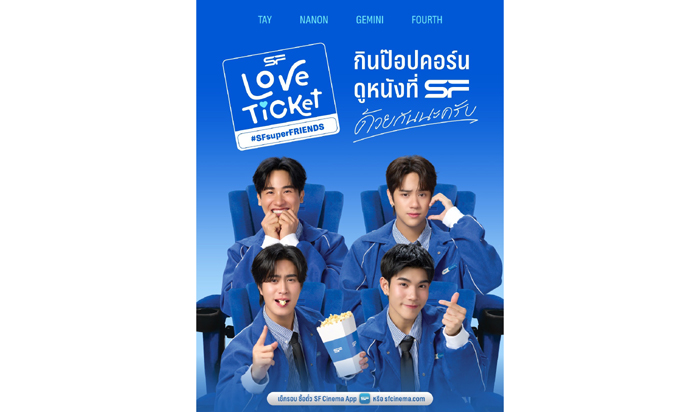 โรงภาพยนตร์ในเครือ เอส เอฟ เปิดตัวแคมเปญ “LOVE TICKET” ส่งมอบความสุขให้ลูกค้าทุกไลฟ์สไตล์ จัดเต็มแพ็กเกจสุดคุ้ม พร้อมกิจกรรมน่ารัก ชวน SF Super Friends (เต-ตะวัน, นนน-กรภัทร์, เจมีไนน์-นรวิชญ์ และ โฟร์ท-ณัฐวรรธน์) ทำภารกิจ Super Mission ตลอดเดือนกุมภาพันธ์