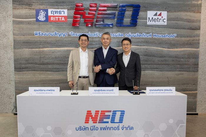 นายปณิธาน เทพนิกร ประธานเจ้าหน้าที่บริหาร บริษัท ฤทธา จำกัด กล่าวเสริมว่า “การร่วมมือกับนีโอและเมตริกในโครงการนี้ จะประสานประสบการณ์และความเชี่ยวชาญในด้านวิศวกรรมและก่อสร้างของฤทธาในการพัฒนาโรงงานที่รองรับระบบการผลิตที่ทันสมัย การจัดการห่วงโซ่อุปทาน และเทคโนโลยีการผลิตเฉพาะทาง โดยมุ่งเน้นประสิทธิภาพสูงสุด ตอบโจทย์ความต้องการของนีโอทั้งในการเพิ่มกำลังการผลิต บรรลุเป้าหมายในการเติบโตอย่างยั่งยืน และสร้างความแข็งแกร่งให้กับอุตสาหกรรม FMCG ของไทย”