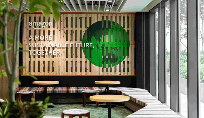 • การผสมผสานวัฒนธรรม Amazon และเอเชียในสำนักงาน:สำนักงานได้นำเสนอหลักการผู้นำของ Amazon (Leadership Principles) ผ่านการตกแต่งด้วยงานกราฟิกที่สดใสและมีชีวิตชีวา ซึ่งสะท้อนให้เห็นถึงวัฒนธรรมองค์กรที่ให้ความสำคัญกับลูกค้าและการวางแผนระยะยาว นอกจากนี้ ยังได้ตั้งชื่อห้องประชุมและพื้นที่ทำงานร่วมตามสถานที่สำคัญและสัญลักษณ์ทางวัฒนธรรมที่สำคัญของเอเชีย เพื่อสร้างบรรยากาศการทำงานที่เป็นเอกลักษณ์ ผสมผสานระหว่างหลักการสากลของ Amazon และมรดกทางวัฒนธรรมเอเชียได้อย่างลงตัว