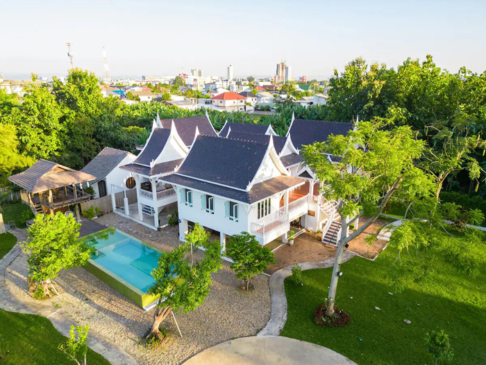 วิลล่าแห่งนี้ห่างจากเซ็นทรัลเชียงใหม่ เพียงแค่ 900 เมตร เท่านั้น ให้กลิ่นอายความหรูหราและเป็นส่วนตัวด้วยบ้านพัก 2 หลัง ที่ประกอบไปด้วย 4 ห้องนอน รองรับผู้เข้าพักได้สูงสุดถึง 13 คน นอกจากนี้ยังมีห้องครัวอุปกรณ์ครบครัน ห้องนั่งเล่น 2 ห้อง พร้อมวิวสระว่ายน้ำว่ายน้ำ 2 สระ รวมถึงสระเด็ก เหมาะสำหรับครอบครัวที่มีเด็กเล็กหรือกลุ่มเพื่อนที่อยากใช้เวลาร่วมกันในบรรยากาศสบายๆ