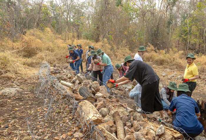 สร้างฝายชะลอน้ำ ฟื้นฟูทรัพยากรน้ำและป่าไม้ ฝายชะลอน้ำมีบทบาทสำคัญในการอนุรักษ์สิ่งแวดล้อม เนื่องจากช่วยลดการพังทลายของดิน ชะลอการไหลของน้ำ และเพิ่มระยะเวลาการกักเก็บน้ำ ทำให้ความชุ่มชื้นในดินเพิ่มขึ้น ส่งผลดีต่อระบบนิเวศโดยรวม ความชุ่มชื้นที่เพิ่มขึ้นช่วยส่งเสริมความหลากหลายทางชีวภาพและสร้างสิ่งแวดล้อมที่ดีขึ้น โดยฝายชะลอน้ำยังเป็นที่อยู่อาศัยของสัตว์น้ำ และใช้เป็นแหล่งน้ำเพื่อการอุปโภคบริโภคอีกด้วย โดย SMS ได้ร่วมสร้าง ฝายชะลอน้ำแบบผสมผสาน เป็นจำนวน 15 ฝายด้วยกัน