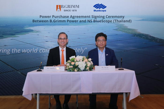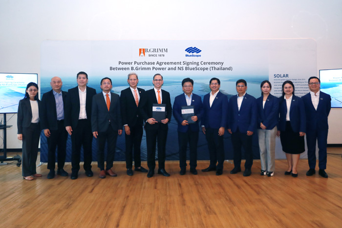 บริษัท บี.กริม เพาเวอร์ จำกัด (มหาชน) และ บริษัท เอ็นเอส บลูสโคป (ประเทศไทย) จำกัด ลงนามความร่วมมือ พัฒนาโครงการติดตั้งแผงโซลาร์เซลล์ บนพื้นเรียบ (Ground Mounting Solar) กำลังการผลิต 12 เมกะวัตต์ หรือ เทียบเท่าการลดปริมาณก๊าซเรือนกระจกสูงสุดประมาณ 9000 ตันต่อปี เพื่อส่งเสริมการใช้พลังงานหมุนเวียนอย่างมีประสิทธิภาพ โดยโครงการดังกล่าวจะแล้วเสร็จพร้อมจ่ายไฟเข้าระบบภายในกลาง ปี 2569 โดยมี นายนพเดช กรรณสูต ประธานเจ้าหน้าที่บริหาร ธุรกิจในประเทศไทยและโซลูชั่นธุรกิจอุตสาหกรรม บริษัท บี.กริม เพาเวอร์ จำกัด (มหาชน) และ นายยาน ซู ประธานกรรมการบริหาร บริษัท เอ็นเอส บลูสโคป (ประเทศไทย) จำกัด และ เป็นผู้ลงนามในข้อตกลงครั้งสำคัญ ซึ่งนับเป็นก้าวสำคัญในการขับเคลื่อนอุตสาหกรรมไทยสู่อนาคตพลังงานสะอาด และสร้างความมั่นคงด้านพลังงานในระดับประเทศ