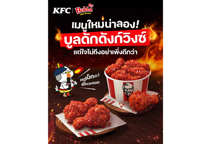 เตรียมต่อมรับรสให้พร้อม! เพราะ KFC Thailand จับมือ Buldak นำเสนอระดับความเผ็ดที่ไม่เคยมีมาก่อนในเมนูใหม่ล่าสุด “บูลดัก ดังก์วิงซ์” ปีกไก่ทอดกรอบเคลือบซอสออริจินัลเผ็ดฉ่ำจาก Buldak การันตีว่าเผ็ดลึกถึงกระดูก(ไก่)! งานนี้คุณอาจจะคิดว่าไหว…แต่บอกเลยว่าไม่!