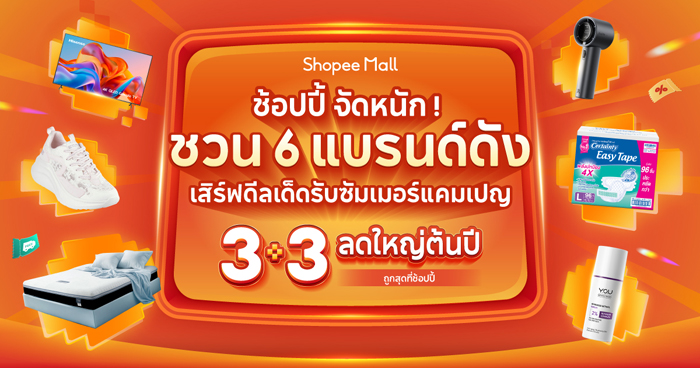 ร่วมช้อปสินค้าคุณภาพจากแบรนด์ชั้นนำในราคาสุดพิเศษได้ที่ Official Store ของทั้ง 6 แบรนด์บน Shopee ตั้งแต่วันที่ 28 กุมภาพันธ์ ถึง 5 มีนาคม 2568 นี้เท่านั้น โดยสามารถติดตามรายละเอียดของแคมเปญเพิ่มเติมได้ที่ https://shopee.co.th/m/3-3