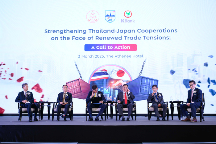 ธนาคารกสิกรไทย ร่วมกับ สมาคมไทย-ญี่ปุ่น (TJA) และหอการค้าญี่ปุ่น-กรุงเทพฯ จัดงานสัมมนา “Strengthening Thailand-Japan Cooperation on the Face of Renewed Trade Tensions” เพื่อเป็นโอกาสให้ผู้ประกอบการไทย-ญี่ปุ่นได้ยกระดับความร่วมมือในการเผชิญกับความไม่แน่นอนทางการค้าและภูมิรัฐ ศาสตร์ทั่วโลก และเน้นย้ำถึงความมุ่งมั่นของรัฐบาลไทยในการสนับสนุนธุรกิจญี่ปุ่นในประเทศไทยตลอดจนแลกเปลี่ยนมุมมองทางธุรกิจ ด้านศูนย์วิจัยกสิกรไทยมองว่า บริษัทญี่ปุ่นมีศักยภาพในการขยายการลงทุนและสร้างการเติบโตในหลากหลายภาคส่วน โดยเฉพาะในอุตสาหกรรมเทคโนโลยีขั้นสูง ทำให้นักลงทุนและธุรกิจญี่ปุ่นในประเทศ ไทยกำลังเผชิญทั้งโอกาสและความท้าทายที่สำคัญ โดยธนาคารกสิกรไทยพร้อมสนับสนุนภาคธุรกิจไทยและญี่ปุ่น ในการปรับตัวรับความเปลี่ยนแปลงที่รวดเร็ว ผ่านบริการทางการเงินที่หลากหลาย การให้คำปรึกษา รวมทั้งการเชื่อมต่อภูมิภาค AEC+3