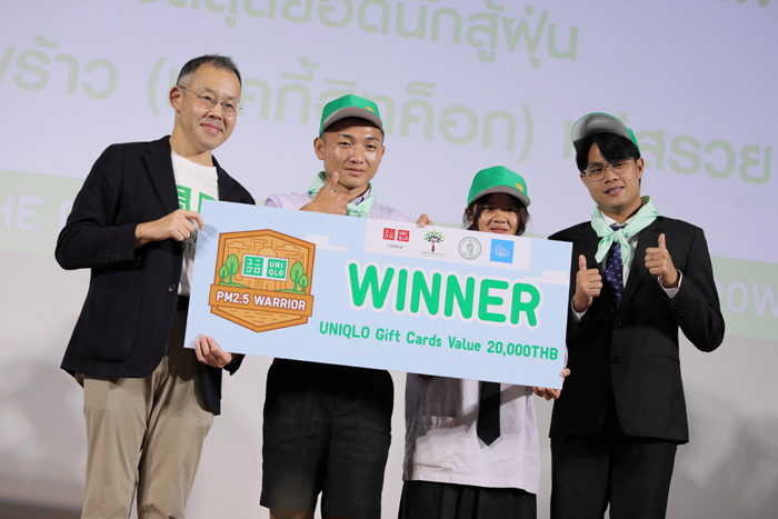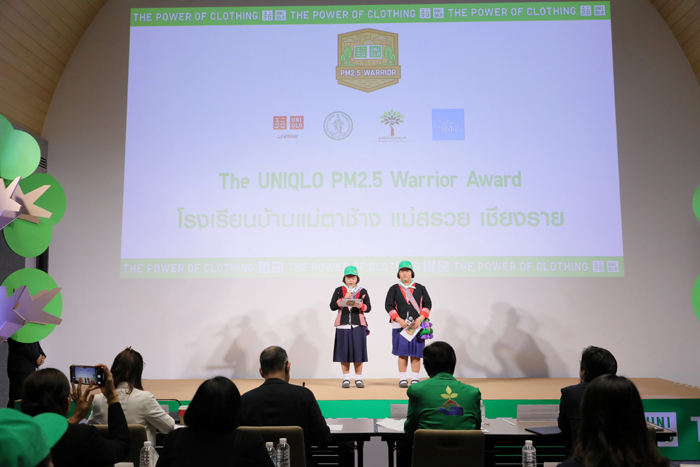 กิจกรรม “สุดยอดนักสู้ฝุ่น” หรือ UNIQLO PM2.5 Warrior Award จัดขึ้นเป็นครั้งแรก เปิดโอกาสให้เยาวชน จาก 7 โรงเรียนในกรุงเทพฯ และ 10 โรงเรียน จากจังหวัดเชียงราย นำเสนอวิธีการรักษ์โลก ลดปัญหาฝุ่นควัน PM2.5 ในรูปแบบของตัวเองภายใต้หัวข้อ “Green School Green Bangkok และ Green School Green DoiChang” โดยได้รับเสียงตอบรับเข้าร่วมกิจกรรมจากโรงเรียนต่างๆ เป็นอย่างดี และในวันตัดสินผู้ชนะรางวัล “สุดยอดนักสู้ฝุ่น” ได้รับเกียรติจากคณะกรรมการกิตติมศักดิ์ ดร. คุณหญิงกัลยา โสภณพนิช, คุณปาจริยา มหากาญจนะ, ผู้ช่วยศาสตราจารย์ ดร. นิอร สิริมงคลเลิศกุล และ มร. อลิฮิโตะ มะซือโมโตะ ร่วมให้คะแนนและข้อเสนอแนะ พร้อมจุดประกายความคิดเรื่องของ การรักษ์สิ่งแวดล้อม หัวใจของการแก้ไขปัญหา และการทำงานเป็นทีมให้กับเด็กๆ ทุกคน โดยโรงเรียนที่ได้รับรางวัลชนะเลิศจากกรุงเทพฯ ได้แต่ โรงเรียนวัดประดูธรรมาธิปัตย์ ภายใต้ “โครงการ ม่านต้นไม้คลายร้อน” และ โรงเรียนที่ได้รับรางวัลชนะเลิศจาก จ. เชียงราย โรงเรียนบ้านทุ่งพร้าว (เพ็คกี้ฮิทค็อก) ใน “โครงการการอบรม Infographic Presentation เพื่อการรณรงค์ป้องกันฝุ่นละออง PM2.5”