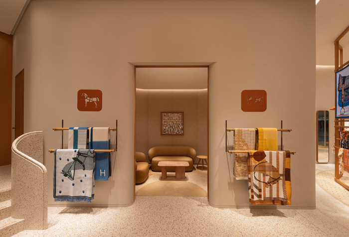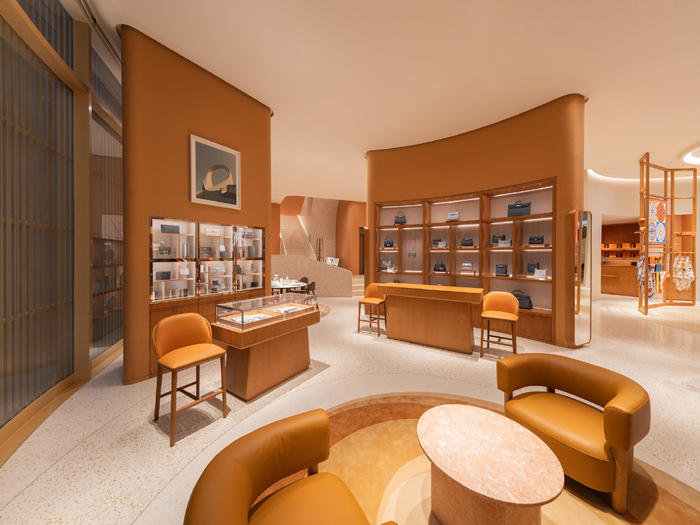 ร้านแห่งนี้ออกแบบโดย RDAI บริษัทออกแบบสถาปัตยกรรมจากฝรั่งเศสนำเสนอบรรยากาศผ่อนคลาย เรียบง่ายแต่น่าหลงใหล ภายใต้มุมมองโมเดิร์นที่ยังคงอัตลักษณ์ Hermès ผ่านรายละเอียดต่างๆ เช่น ม่านไม้ สีสันสดใส พรมช่างฝีมือท้องถิ่น สร้างเส้นทางการค้นพบที่น่าสนใจนำเสนอการเปลี่ยนผ่านระหว่างสถาปัตยกรรมและงานฝีมืออันประณีต
