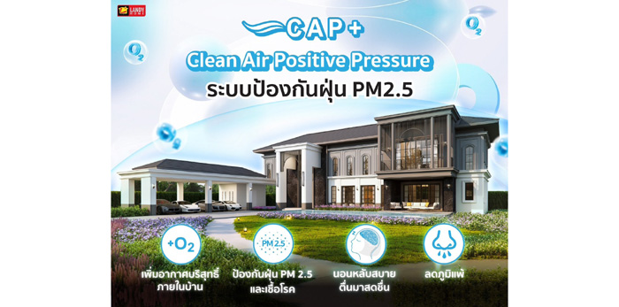 ทั้งนี้ บริษัท แลนดี้ โฮม (ประเทศไทย) จำกัด ในฐานะผู้นำธุรกิจรับสร้างบ้าน เป็นรายแรกและรายเดียวในสมาคมธุรกิจรับสร้างบ้าน ที่ติดตั้งระบบ CAP+ (Clean Air Positive Pressure) ซึ่งนำมาสู่ผลงานการสร้างยอดขายพุ่งมา 4 ปีซ้อนโดยเป็นมาตรฐานในบ้านทุกหลัง เพื่อปกป้องสุขภาพของผู้อยู่อาศัย โดยระบบดังกล่าวเป็นระบบ Full System ที่ติดตั้งมาพร้อมกับตัวบ้าน โดยไม่มีค่าใช้จ่ายเพิ่มเติม นี่คือเทคโนโลยีที่ไม่มีในบริษัทรับสร้างบ้านเจ้าอื่น ซึ่งแตกต่างจากบ้านทั่วไปที่ยังคงต้องพึ่งพาเครื่องฟอกอากาศแบบเฉพาะจุด ระบบนี้จึงไม่ใช่แค่ฟังก์ชันเสริม แต่เป็น “เกราะป้องกันบ้านป้องกันฝุ่น PM 2.5” ได้ตั้งแต่แรกก่อนเข้าสู่ภายในบ้าน