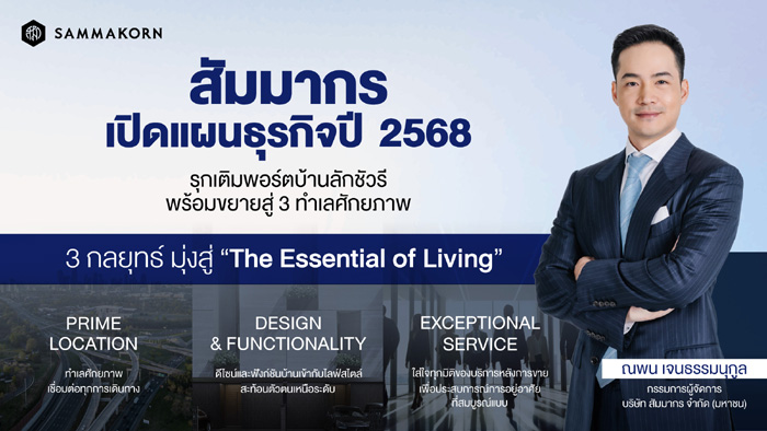 55 ปีแห่งการเติบโตอย่างมั่นคงและยั่งยืนของบริษัท สัมมากร จำกัด (มหาชน) ผู้พัฒนาอสังหาริมทรัพย์แบรนด์ไทยที่ได้รับความเชื่อถือและไว้วางใจมาโดยตลอด กับ 27 รางวัลแห่งความสำเร็จจากเวทีในประเทศและระดับโลก ภายใต้แคมเปญ “สัมมากร…ไม่ใช่สรรพากร” ที่สร้างความน่าจดจำและชวนให้นึกถึงแบรนด์ในแง่มุมสนุกกว่าที่เคย เผยถึงทิศทางธุรกิจปี 2568 ฝ่ามรสุมช่วงตลาดอสังหาฯ ชะลอตัว ปักธง 3 ทำเลศักยภาพ เกษตร-นวมินทร์ และ ลาซาล จากแบรนด์ “Providence Lane” และโครงการใหม่ในซอยลาดพร้าว 91 กับโครงการ “91 KINTON” พร้อมตั้งเป้าสร้างรายได้เติบโตขึ้น 60% จากปี 2567