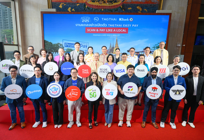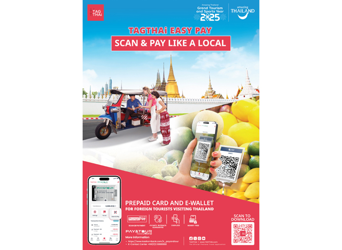 นางสาวขัตติยา อินทรวิชัย ประธานเจ้าหน้าที่บริหาร ธนาคารกสิกรไทย กล่าวว่า ตลาดนักท่องเที่ยวต่างชาติที่เดินทางมาไทยยังคงเติบโตอย่างต่อเนื่อง โดยศูนย์วิจัยกสิกรไทยคาดการณ์ว่าในปี 2568 จำนวนนักท่องเที่ยวจะเพิ่มขึ้นอีก 5.6% จากปีก่อนหน้า เพื่อตอบรับแนวโน้มดังกล่าว ธนาคารกสิกรไทยเล็งเห็นถึงความสำคัญของ ระบบชำระเงินไร้รอยต่อ (Seamless Payment) ที่มีความปลอดภัยสูงและช่วยให้นักท่องเที่ยวต่างชาติใช้จ่ายได้สะดวกยิ่งขึ้น จึงพัฒนาบัตร Prepaid PAY&TOUR ซึ่งสามารถเชื่อมต่อกับอีวอลเล็ต TAGTHAi Easy Pay เพื่อให้นักท่องเที่ยวสามารถสแกนจ่ายได้ทุกร้านค้าทั่วไทยที่รองรับ Thai QR Payment โดยเริ่มทดลองให้บริการตั้งแต่ปี 2567 ที่ผ่านมา ซึ่งเปิดให้นักท่องเที่ยวสามารถสมัครใช้บริการผ่านบูทแลกเปลี่ยนเงินตราต่างประเทศของธนาคารกสิกรไทย ณ ท่าอากาศยานสุวรรณภูมิ และในปีนี้ธนาคารเตรียมขยายจุดให้บริการไปยังสาขาต่าง ๆ กว่า 100 แห่งทั่วประเทศ เพื่อให้เข้าถึงนักท่องเที่ยวได้มากขึ้น