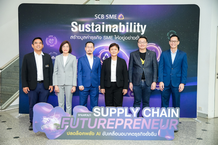 ธนาคารไทยพาณิชย์ จัดงาน “Supply Chain Futureprenuer ปลดล็อคพลัง AI ขับเคลื่อนอนาคตธุรกิจยั่งยืน” เพื่อสนับสนุนผู้ประกอบการเอสเอ็มอีในกลุ่มซัพพลายเชน จำนวน 150 คน เพื่อให้เข้าใจหลักคิดและแนวปฏิบัติในการนำ AI มาประยุกต์ใช้ในการดำเนินธุรกิจ พร้อมกับการเตรียมความพร้อมในการเปลี่ยนผ่านธุรกิจสู่สังคมคาร์บอนต่ำ ตามแนวคิด “อยู่ อย่าง ยั่งยืน” ของธนาคารไทยพาณิชย์ และนำมาสานต่อเป็นโครงการ “เริ่ม เพื่อ รอด” (Start Now) ให้แก่ลูกค้าเอสเอ็มอีสู่การเป็นธุรกิจสีเขียวอย่างยั่งยืนผ่านเสวนา “เจาะลึกทิศทาง SME ให้เท่าทันธุรกิจยุคใหม่” โดยมี นางกนกวรรณ ใจศรี ผู้ช่วยผู้จัดการใหญ่ ผู้บริหารสายงาน Business Banking 1 ธนาคารไทยพาณิชย์ กล่าวเปิดงานและให้การต้อนรับคณะผู้ร่วมเสวนา ประกอบด้วย นางภคมน สุภาพพันธ์ ผู้อำนวยการสำนักรับรองธุรกิจคาร์บอนต่ำ องค์การบริหารจัดการก๊าซเรือนกระจก (องค์การมหาชน) นายวรพจน์ ประสานพานิช ผู้ช่วย ผู้อำนวยการ สำนักงานส่งเสริมวิสาหกิจขนาดกลางและขนาดย่อม (สสว.) ดร.ชินาวุธ ชินะประยูร ผู้ช่วยผู้อำนวยการใหญ่ สำนักงานส่งเสริมเศรษฐกิจดิจิทัล (depa) นายสุรพงษ์ สาเรชพันธุ์ ประธานเจ้าหน้าที่บริหารบริษัท บีพีเอส เทคโนโลยี จำกัด (มหาชน) และ นายภัทร จ้อยประดิษฐ์ Head of AI Business บริษัท โซโลมอน เทคโนโลยี ไทยแลนด์ จำกัด ที่มาร่วมแบ่งปันความรู้ ให้คำแนะนำ และมอบทุนสนับสนุน เพื่อส่งเสริมการนำเทคโนโลยี AI มา ยกระดับประสิทธิภาพทางธุรกิจ นอกจากนี้ ผู้เข้าร่วมงานยังได้สัมผัสประสบการณ์จริงในการประเมินคาร์บอนฟุตพริ้นท์องค์กรผ่านแพลตฟอร์มออนไลน์ขององค์การบริหารจัดการก๊าซเรือนกระจก (องค์การมหาชน) ผ่านกิจกรรม Workshop