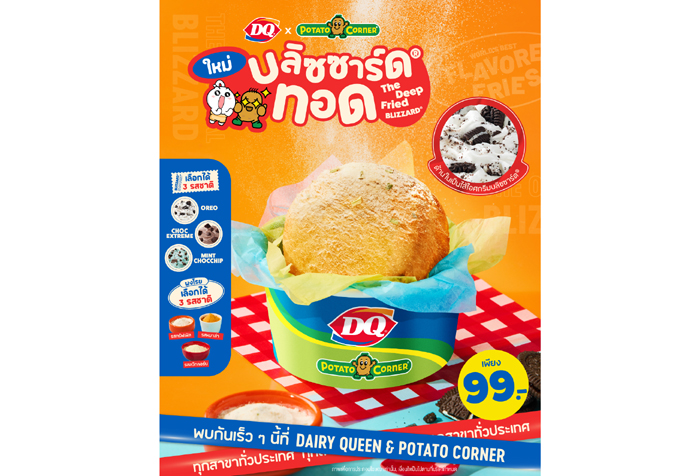 เตรียมพบกับปรากฏการณ์ความอร่อยที่ไม่เคยมีมาก่อน! Dairy Queen และ Potato Corner สองแบรนด์ดังที่ครองใจสายกินทั่วประเทศ ผสานความอร่อยแบบเหนือชั้น เปิดตัวเมนูใหม่สุดว้าว “บลิซซาร์ดทอด คลุกผงรสชาติ Potato Corner” ความอร่อยที่เป็นทั้ง ร้อนและเย็น กรอบและนุ่ม ในคำเดียว!