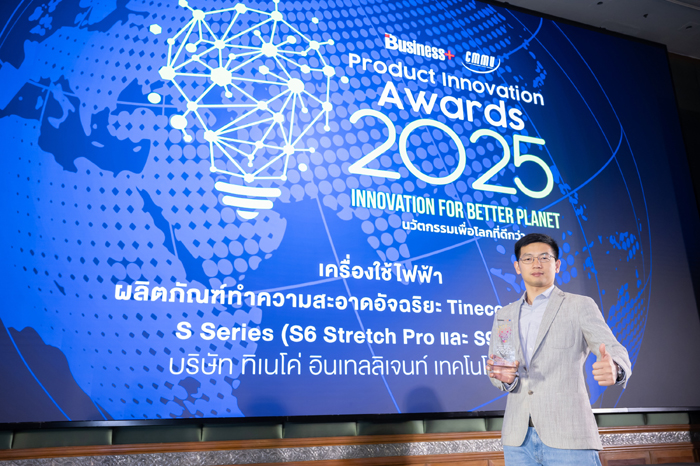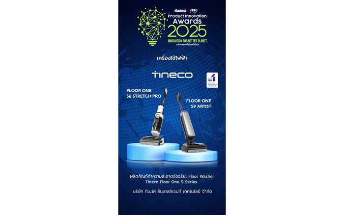 TINECO (ทิเนโค่) แบรนด์ชั้นนำด้านเครื่องดูดฝุ่นอัจฉริยะและเครื่องใช้ไฟฟ้าอัจฉริยะระดับโลก ประสบความสำเร็จอย่างงดงามกับอีก 1 ก้าวสำคัญ ในงาน BUSINESS+ PRODUCT INNOVATION AWARDS 2025– INNOVATION FOR BETTER PLANET นวัตกรรมเพื่อโลกที่ดีกว่าด้วยการคว้ารางวัลนวัตกรรมยอดเยี่ยมประจำปี 2568 เครื่องใช้ไฟฟ้า ผลิตภัณฑ์ทำความสะอาดบ้านอัจฉริยะ จากผลิตภัณฑ์ TINECO FLOOR ONE S Series (รุ่น S6 Stretch Pro และ S9 Artist) เครื่องดูดฝุ่นถูพื้นอัจฉริยะรุ่นใหม่ล่าสุดประสบการณ์การทำความสะอาดบ้านที่เหนือระดับกว่าที่เคยมี