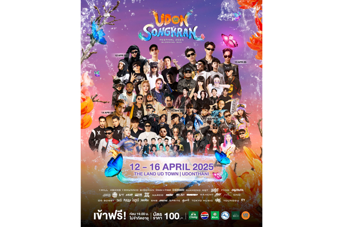 ยูดี ทาวน์ ชวนเที่ยวงานมหาสงกรานต์ UDON SONGKRAN FESTIVAL 2025 สืบสานประเพณีไทยภายใต้สโลแกน “เทศกาลเปียกน้ำ เบ่งบานเสียงดนตรี ม่วนซื่นอีหลี ปาร์ตี้อีสาน” ชุ่มฉ่ำกับอุโมงค์น้ำขนาดยักษ์ระบบ เลเซอร์ แสง สี เสียง สุดอลังการ!!