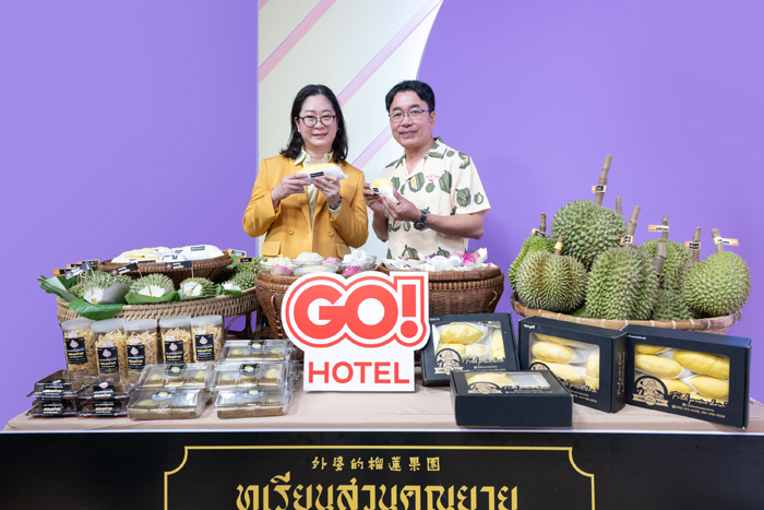 GO Hotel จับมือกับ การท่องเที่ยวแห่งประเทศไทย (ททท.) สำนักงานระยอง มอบบัตรรับประทานบุฟเฟต์ทุเรียนสวนคุณยาย จ.ระยอง ให้กับลูกค้าที่จองผ่านช่องทางที่กำหนด “ทุเรียนสวนคุณยาย” ตั้งอยู่ที่ อ.เขาชะเมา จ.ระยอง ด้วยประสบการณ์มากกว่า 50 ปี ตั้งแต่สมัยรุ่นคุณยาย มาจนถึงรุ่นหลาน คัดเลือกทุเรียนเกรดพรีเมียมด้วยความใส่ใจในคุณภาพ และรสชาติที่ดีที่สุด หลากหลายสายพันธุ์ทั้งพื้นบ้านพื้นเมือง พันธุ์โบราณ อาทิ ก้านยาว นวลทองจันทร์ นกหยิบ พวงมณี หลงลับแล มูซันคิง หรือจะยอดนิยมอย่าง ก้านยาว และหมอนทอง ก็มีให้เลือกทาน