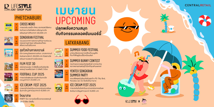 ศูนย์การค้าโรบินสันไลฟ์สไตล์ ในเครือเซ็นทรัล รีเทล ชวนคุณมาเฉลิมฉลองความสุขต้อนรับปีใหม่ไทยไปกับอิเวนต์สุดยิ่งใหญ่ตลอดเดือนเมษายนนี้ ที่จะเติมเต็มความสนุกให้ทุกคนในครอบครัวแบบจัดเต็ม! พบกับกิจกรรมไฮไลต์สงกรานต์มากมาย ทั้งปาร์ตี้คอนเสิร์ตสุดมันส์จากศิลปินดัง อุโมงค์น้ำมหาสนุก ขบวนแห่สงกรานต์สุดอลังการ การแข่งขันประกวดการแต่งกายในธีมซัมเมอร์ เทศกาลอาหารแสนอร่อย และกิจกรรมเสริมสิริมงคลต้อนรับปีใหม่ไทยพร้อมพบกับกิจกรรมสุดพิเศษที่โรบินสันไลฟ์สไตล์ทุกสาขา ทั้งการร่วมฉลองปีใหม่ไทยอย่างมีสีสัน! เพียงแต่งชุดไทยมาเดินช้อปที่ศูนย์การค้าโรบินสันไลฟ์สไตล์ทุกสาขา ระหว่างวันที่ 13เม.ย. 68-15 เม.ย. 68 รับฟรี! ไอศกรีมสุดอร่อย 1,000 ถ้วยต่อสาขาและ “โรบินสันไลฟ์สไตล์ ICE CREAM FEST 2025″ โรบินสันไลฟ์สไตล์ ร่วมกับ สเวนเซ่นส์ เฟ้นหาสุดยอดนักกินไอศกรีม “มะม่วงอกร่องทองซันเด อร่อยตราตรึง” ในวันที่ 20 เม.ย. 68 ลุ้นชิงเงินรางวัลมูลค่ารวมกว่า 156,000 บาท (ทุกสาขาทั่วประเทศ ยกเว้นสาขานครศรีธรรมราช)