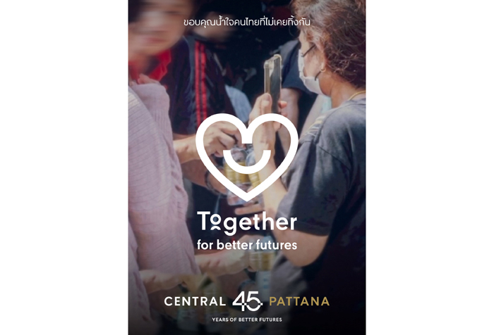 และในยามวิกฤต เราได้เห็นถึง ‘น้ำใจ’ อันยิ่งใหญ่ของคนไทยเสมอมา แม้ไม่เคยรู้จักกันมาก่อน แต่คนไทยไม่เคยทอดทิ้งกัน ความมีน้ำใจและการช่วยเหลือกันคือพลังที่สะท้อนหัวใจของชาติ เซ็นทรัลพัฒนา ในฐานะผู้นำด้านการพัฒนาอสังหาริมทรัพย์ของไทย เล็งเห็นคุณค่าของพลังน้ำใจนี้อย่างลึกซึ้ง และขอเป็นหนึ่งพลังสำคัญในการส่งต่อกำลังใจให้สังคมไทยก้าวข้ามช่วงเวลาที่ยากลำบากนี้ไปด้วยกัน โดยขอเปิดพื้นที่ผ่านแคมเปญ Central Pattana #TogetherforBetterFutures ให้ทุกท่านร่วมแบ่งปันเรื่องราวดี ๆ ที่ได้พบเจอพร้อมร่วมขอบคุณน้ำใจของผู้คนที่อยู่เคียงข้างกันในวันที่ยากลำบาก เพราะเราเชื่อว่าความเป็นน้ำหนึ่งใจเดียวกันของคนไทย จะช่วยสร้างสรรค์สังคมและอนาคตที่ดียิ่งขึ้นตลอดไป