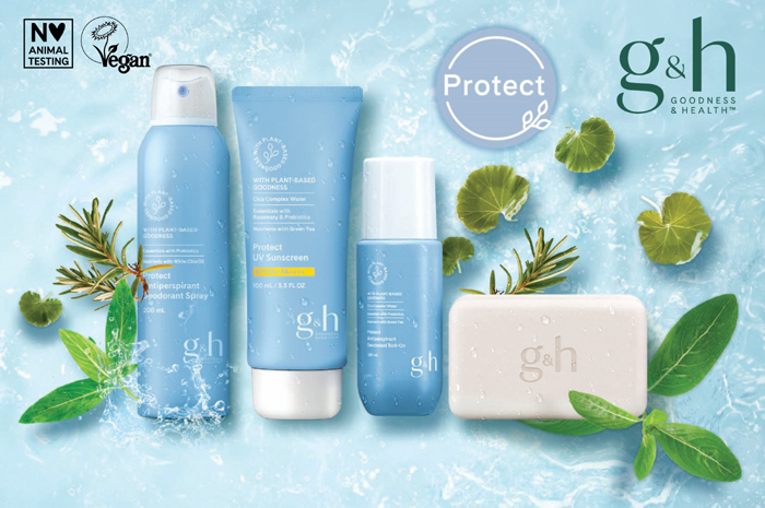 จีแอนด์เอช กู๊ดเนส แอนด์ เฮลท์ โพรเท็คท์ สบู่อาบน้ำ (G&H Goodness & Health Protect Bar Soap) สบู่อาบน้ำ ช่วยทำความสะอาดผิวกายอย่างอ่อนโยน มีส่วนผสมชาเขียว จากฟาร์มออร์แกนิกนิวทริไลท์ ช่วยปกป้องผิวจากสารแอนตี้ออกซิแดนท์ สารสกัดจากโรสแมรี่ ช่วยปลอบประโลมผิว และกลีเซอรีนจากพืช ช่วยให้ความชุ่มชื้น มีส่วนช่วยลดกลิ่นกาย ขจัดคราบสิ่งสกปรก ช่วยคงความชุ่มชื้นและปรับสภาพผิวตามธรรมชาติ และไฮไลท์สำหรับซัมเมอร์นี้ จีแอนด์เอช กู๊ดเนส แอนด์ เฮลท์ ยูวี โพรเท็คท์ ยูวี ซันสกรีน (G&H Goodness & Health UV Protect UV Sunscreen) ครีมกันแดดเนื้อเบาบาง สูตรสบายผิว ซึมเร็ว สามารถปกป้องผิวจากมลภาวะที่ทำร้ายผิว และรังสียูวีบี/ยูวีเอ ด้วยค่าเอสพีเอฟสูงถึง 50+ มีส่วนผสมซิกา คอมเพล็กซ์ วอเตอร์ กลีเซอรีนจากพืช และอื่น ๆ ช่วยให้ความชุ่มชื้นและปลอบประโลมผิว ชาเขียว ช่วยปกป้องผิวจากมลภาวะที่ทำร้ายผิว และโรสแมรี่ ช่วยปลอบประโลมผิว เหมาะสำหรับทุกสภาพผิว สามารถใช้งานได้ทุกวัน อีกทั้ง ผ่านการรับรองโดยมูลนิธิโรคมะเร็งผิวหนัง หรือ Skin Cancer Foundation (SCF) องค์กรระดับโลกที่ให้ความรู้ด้านการแพทย์เกี่ยวกับการป้องกัน ตรวจหาและการรักษาโรคมะเร็งผิวหนัง การันตีส่วนผสมที่ปลอดภัยและมีประสิทธิภาพในการป้องกันความเสียหายที่อาจนำไปสู่โรคมะเร็งผิวหนัง