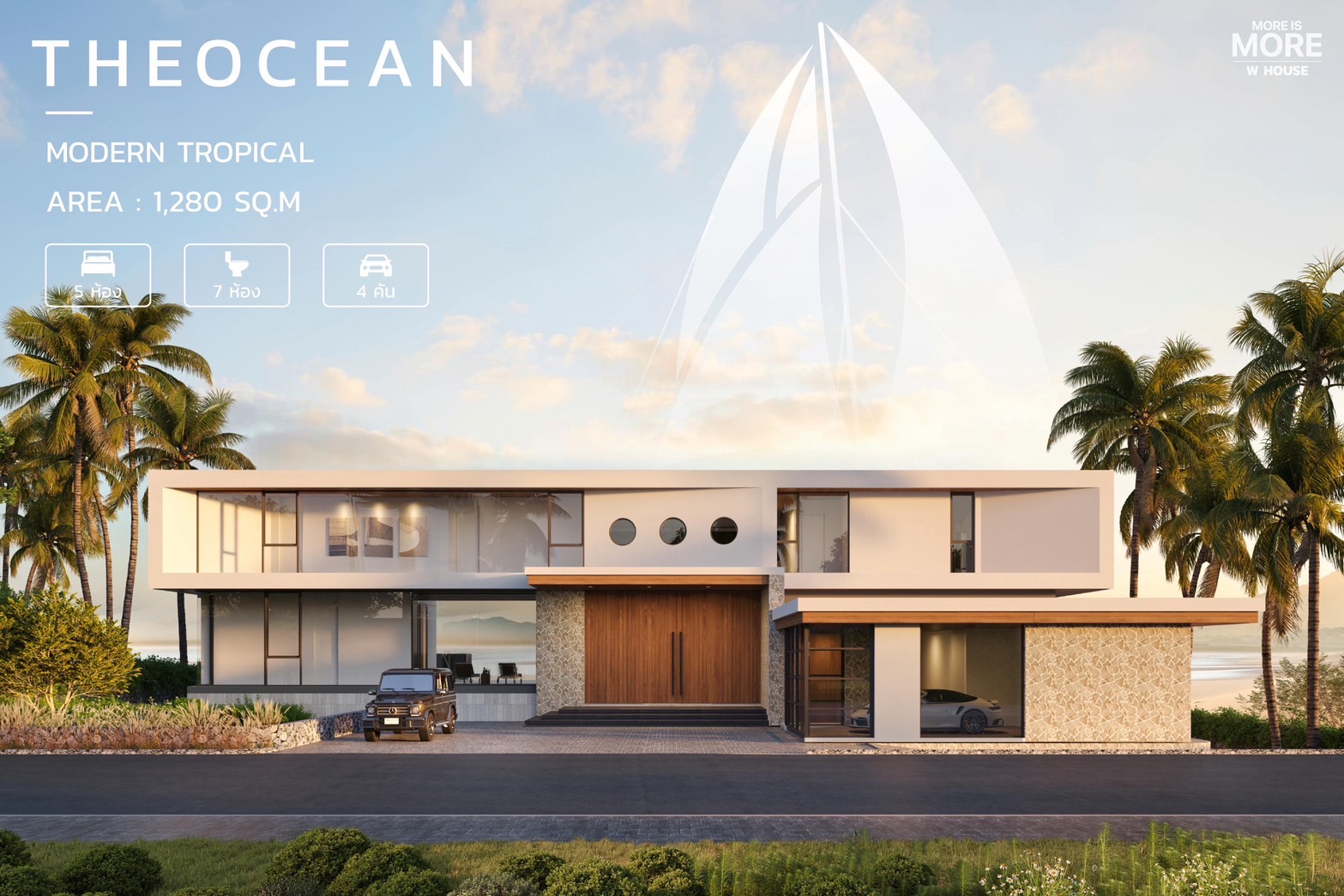 THE OCEAN คฤหาสน์ริมทะเล 3 ชั้น สไตล์ Modern Tropical ขนาด 1,280 ตร.ม. จำนวน 5 ห้องนอน 7 ห้องน้ำ และ 4 ที่จอดรถ โดยได้แรงบันดาลใจจากเรือยอร์ชหรู โดดเด่นด้วยการเล่นระดับ และห้องชมวิวในทุกชั้น ให้ความรู้สึกเหมือนอยู่ในบ้านพักตากอากาศทุกวัน