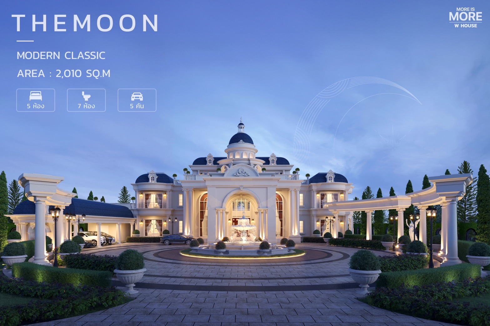 - THE MOON คฤหาสน์ 3 ชั้น สไตล์ Modern Classic ขนาด 2,010 ตร.ม. ขนาด 5 ห้องนอน 7 ห้องน้ำ และ 5 ที่จอดรถ พร้อมพื้นที่ใช้สอยครบครัน เช่น ห้องนอนมาสเตอร์ 2 ห้อง, Party Room, Golf Simulator และโซนรับวิวสระว่ายน้ำพระจันทร์เสี้ยวและสวนยุโรป