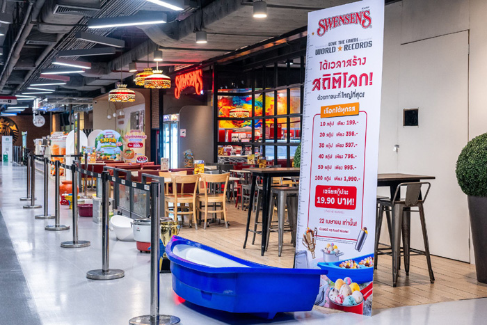 แคมเปญ Swensen’s Earth Day 2025 – Love the Earth – World Record จะเปิดให้ร่วมสนุกในวันอังคารที่22 เมษายน 2568 วันเดียวเท่านั้น พร้อมชวนให้ผู้บริโภคนำภาชนะสุดครีเอทแบบใดก็ได้ที่สะอาดและเหมาะสมมาใส่ไอศกรีมแทนถ้วยหรือแก้วทั่วไป ภายใต้เงื่อนไขการซื้อไอศกรีมตั้งแต่ 10 – 100 สกู๊ป ในราคาเพียงสกู๊ปละ 19 บาท โดยเริ่มต้นที่ 10 สกู๊ป ราคา 199 บาท ไอศกรีม 20 สกู๊ป ราคา 398 บาท ไอศกรีม 30 สกู๊ป ราคา 597 บาท ไอศกรีม 40 สกู๊ป ราคา 796 บาท ไอศกรีม 50 สกู๊ป ราคา 995 บาท และไอศกรีม 100 สกู๊ป ราคา 1,990 บาท นอกจากจะได้อร่อยไปกับไอศกรีมกว่า 20 รสชาติ สเวนเซ่นส์ยังเตรียมมอบรางวัลพิเศษให้กับผู้ที่ทำลายสถิติ นำ “ภาชนะใหญ่ที่สุด” มาใส่ไอศกรีมอีกด้วย โดยผู้ที่สนใจสามารถร่วมกิจกรรมได้ที่สเวนเซ่นส์ สาขาที่เข้าร่วมรายการ