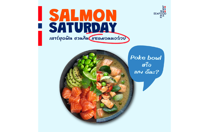 แคมเปญ ‘Salmon Saturday เสาร์สุดฟิน ชวนกินแซลมอน’ ได้จับมือกับร้านอาหารชั้นนำและร้านค้าพาร์ทเนอร์ทั่วประเทศ ในการรังสรรค์เมนูที่หลากหลาย มาพร้อมกับโปรโมชันพิเศษสำหรับคนรักแซลมอนโดยเฉพาะตลอดปี 2568 อาทิ นอร์วีเจียนสโมคแซลมอน จากโรงแรมแมนดาริน โอเรียนเต็ล แซลมอนแอตแลนติกคอนฟีต์ จากโรงแรม เดอะ เซนต์ รีจิส กรุงเทพ แซลมอนอิคุระด้ง จากคามุย ฮอกไกโด ไดนิ่ง และยำนอร์วีเจียนแซลมอนและสาลี่โพชเชมเปญ จาก RhAp Alternative Cuisine นอกจากนี้ คนรักการทำอาหารยังสามารถซื้อแซลมอนได้ในราคาพิเศษที่ร้านค้าพาร์ทเนอร์ ท็อปส์, กูร์เมต์ มาร์เก็ต, ฟู้ดแลนด์, บิ๊กซี, เจ กูร์เมต์, และธรรมชาติ ซีฟู้ด ทุกสาขาทั่วประเทศ
