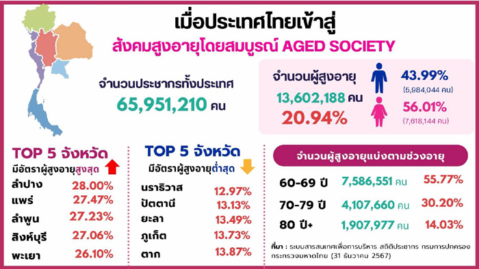 ประเทศไทยกำลังเผชิญความท้าทายที่สำคัญหลังเข้าสู่สังคมผู้สูงอายุ โดยสำนักงานสถิติแห่งชาติ ระบุว่า ปี 2567 ผู้สูงอายุคิดเป็น 20.70% ของประชากรทั้งหมดของประเทศ และคาดการณ์ว่าในปี 2576 จะมีสัดส่วนประชากรสูงอายุเกิน 30% ทำให้ไทยกลายเป็น “สังคมสูงอายุระดับสุดยอด หรือ Super Aged Society” ซึ่งหมายถึงสังคมที่มีประชากรอายุ 60 ปีขึ้นไปมากกว่า 28% หรือมีประชากรอายุ 65 ปีขึ้นไปมากกว่า 20% ของประชากรทั้งหมด ส่งผลให้ประเทศเผชิญความท้าทายด้านเศรษฐกิจสวัสดิการและสุขภาพที่เกิดจากการเสื่อมถอยที่มาพร้อมวัย โรชบริษัทด้านไบโอเทคชั้นนำของโลกทำการสำรวจความคิดเห็นเกี่ยวกับสุขภาพสายตาในภูมิภาคเอเชียแปซิฟิก ปี 2567 (Roche APAC Vision Health 2024) พบว่า เกือบ 1 ใน 5 ของวัยกลางคน-ผู้สูงอายุชาวไทยไม่เคยไปพบจักษุแพทย์เพื่อตรวจสุขภาพตาเป็นประจำ ซึ่งประเทศไทยครองแชมป์ละเลยการตรวจสุขภาพตาสูงสุดในกลุ่มประเทศเอเชียแปซิฟิกที่สำรวจ ได้แก่ ไทย ออสเตรเลีย ฮ่องกง มาเลเซีย ฟิลิปปินส์ สิงคโปร์ เกาหลีใต้ และไต้หวัน โดยข้อมูลชี้ว่า มากกว่า 93% ของผู้ตอบแบบสอบถามชาวไทยมองว่า การสูญเสียการมองเห็นเป็นเรื่องปกติของวัยชรา ”ดวงตา” คือกุญแจสำคัญของคุณภาพชีวิตผู้สูงอายุ
