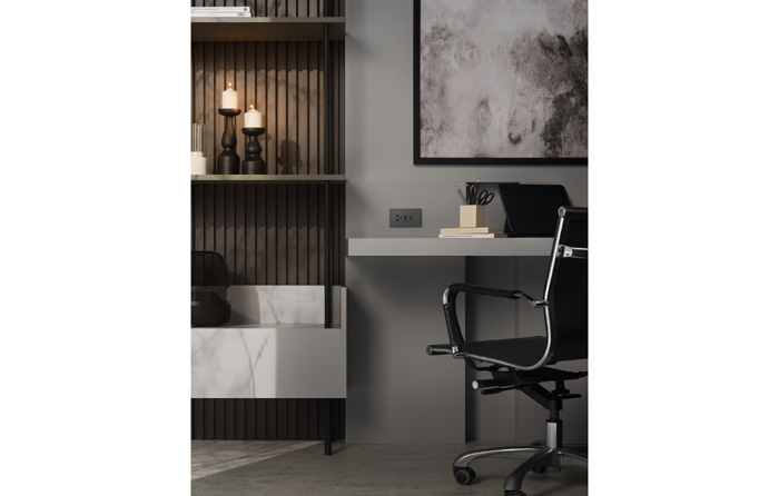 • หน้าสวิตช์บางเพียง 9 มิลลิเมตร ให้ความรู้สึกเรียบเนียนและกลมกลืนไปกับผนัง