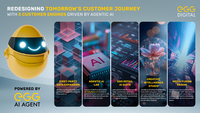 ในปีนี้ เอ้ก ดิจิทัล ได้ผนึกความร่วมมือกับพันธมิตรด้านเทคโนโลยี AI ระดับโลก โดยนำ EGG AI Agent เทคโนโลยี Agentic AI ที่ออกแบบมาเพื่อช่วยให้ธุรกิจเข้าใจลูกค้าในทุกมิติและสามารถตัดสินใจแบบอัตโนมัติได้อย่างชาญฉลาด โดยจะนำมาใช้ขับเคลื่อนการดำเนินงานของทั้ง 3 กลุ่มธุรกิจ พร้อมผสานการทำงานเข้ากับศักยภาพของดาต้า เทคโนโลยี และความคิดสร้างสรรค์อย่างไร้รอยต่อ เพื่อช่วยให้แบรนด์คู่ค้าวางกลยุทธ์การตลาด วางแผนการสื่อสารและโฆษณาได้อย่างล้ำลึก นำไปสู่การสร้างสรรค์ “ข้อเสนอที่โดนใจ” ใน “จังหวะที่ใช่” และผ่าน “ช่องทางที่เหมาะสม” สร้างประสบการณ์เฉพาะบุคคลในทุกโมเมนต์ได้แบบเรียลไทม์ ผ่าน 5 Customer Engine ที่ขับเคลื่อนด้วย EGG AI Agent ถือเป็นเทคโนโลยีอัจฉริยะที่ล้ำสมัยที่สุดในเอเชียตะวันออกเฉียงใต้