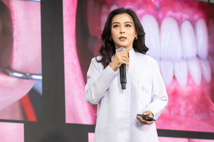 นอกจากนี้ นางสาวจิตรา สังฆกิจ Country Manager บริษัท Straumann Group ประเทศไทย ยังได้ให้ข้อมูลเกี่ยวกับบริษัท Straumann Group และรากฟันเทียมเซรามิกในงาน โดย Straumann Group เป็นบริษัทชั้นนำจากประเทศสวิตเซอร์แลนด์ก่อตั้งขึ้นในปีพ.ศ. 2497 (ค.ศ. 1954) มีสำนักงานใหญ่ตั้งอยู่ที่เมืองบาเซิล ประเทศ สวิตเซอร์แลนด์ บริษัทมีความชำนาญการการในการวิจัยพัฒนาและผลิตอุปกรณ์ทางทันตกรรมในหลากหลายมิติ ไม่ว่าจะเป็นรากฟันเทียม เครื่องมือจัดฟันใส วัสดุชีวภาพ และเทคโนโลยีดิจิทัล เพื่อการดูแลสุขภาพช่องปากอย่างมีประสิทธิภาพ ปัจจุบันผลิตภัณฑ์ของ Straumann Group มีวางจำหน่ายในกว่า 100 ประเทศทั่วโลก โดยยึดมั่นในเทคโนโลยีความน่าเชื่อถือและมาตรฐานการดูแลผู้รับบริการระดับสากล