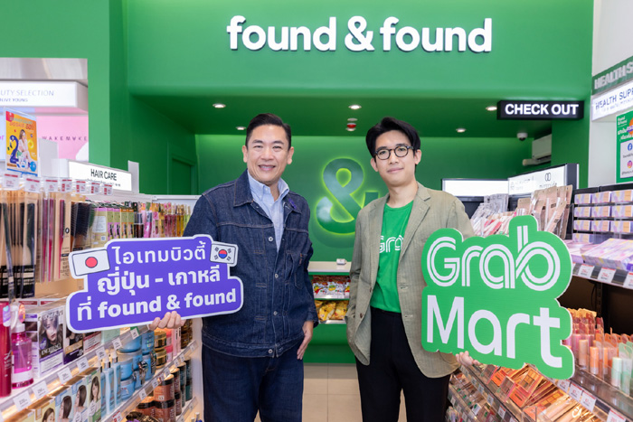 ด้าน คุณจิรกิตต์ กว้างสุขสถิตย์ กล่าวเสริมว่า GrabMart ในฐานะผู้นำด้านบริการสั่งซื้อสินค้าแบบออนดีมานด์จาก ซูเปอร์มาร์เก็ต ร้านสะดวกซื้อ และร้านค้าทั่วไป ถือเป็นหนึ่งในบริการที่ได้รับความนิยมและเติบโตอย่างต่อเนื่อง ด้วยการการันตีส่งไวใน 25 นาที ซึ่งกลุ่มผู้ใช้บริการส่วนใหญ่เป็นผู้บริโภคยุคใหม่ที่ใส่ใจทั้งเรื่องสุขภาพ ความงาม และความสะดวกในการใช้ชีวิต โดยสินค้ายอดนิยมในหมวดสุขภาพและความงาม เช่น ผลิตภัณฑ์เช็ดล้างเครื่องสำอาง แชมพูย้อมผม สบู่ล้างมือ ต่างเป็นสินค้าที่มีอัตราการเติบโตสูง GrabMart รู้สึกยินดีเป็นอย่างยิ่งที่ได้ร่วมมือกับ found & found ซึ่งเป็นร้านจำหน่ายสินค้าสุขภาพและความงามชั้นนำจากญี่ปุ่น-เกาหลี เพื่อช่วยให้ลูกค้าสามารถเข้าถึงสินค้าคุณภาพได้สะดวกมากขึ้น ความร่วมมือในครั้งนี้จะช่วยต่อยอดให้ GrabMart กลายเป็น “One Stop Solution” สำหรับสินค้าในหมวดสุขภาพและความงามได้อย่างครบครัน