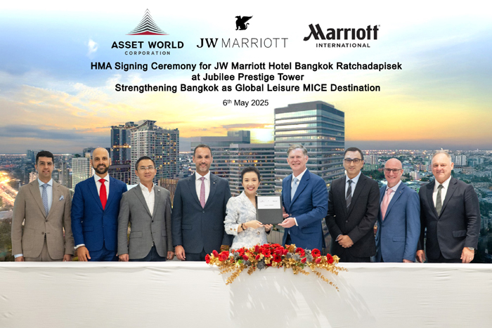 บริษัท แอสเสท เวิรด์ คอร์ป จำกัด (มหาชน) หรือ AWC ผู้พัฒนาอสังหาริมทรัพย์ของไทยที่มุ่งเน้นตอบสนองไลฟ์สไตล์แบบครบวงจร ลงนามข้อตกลงในการพัฒนาและบริหารโรงแรมกับ แมริออท อินเตอร์เนชันแนล (Marriott International) เตรียมเปิดตัว โรงแรม เจดับบลิว แมริออท แบงก์ค็อก รัชดาภิเษก (JW Marriott Hotel Bangkok Ratchadapisek) ณ Jubilee Prestige Tower จุดหมายปลายทางด้านการท่องเที่ยวเพื่อธุรกิจและพักผ่อนกลุ่ม Leisure MICE รวมพื้นที่กิจกรรมสันทนาการครบวงจรใหญ่ที่สุดแห่งแรกใจกลางกรุงเทพฯ กับโรงแรมระดับลักชัวรีที่ได้รับแรงบันดาลใจจากรีสอร์ต ตั้งเป้ามอบประสบการณ์เหนือระดับด้วยสระว่ายน้ำที่ใหญ่ที่สุดใจกลางเมือง เพื่อร่วมสนับสนุนประเทศไทยสู่ศูนย์กลางระดับโลกด้านการพักผ่อน สุขภาพ และการเดินทางเพื่อธุรกิจ โดยเป็นส่วนหนึ่งของพอร์ตโฟลิโอภายใต้แนวคิด AWC’s Lifestyle Destination และสอดคล้องกับกลยุทธ์การเติบโต (Growth-Led Strategy) ปี 2568 ของบริษัท เพื่อมอบนิยามใหม่ของการให้บริการแบบผสมผสาน และพลิกโฉมย่านธุรกิจแห่งใหม่ของกรุงเทพฯ สู่จุดหมายปลายทางระดับโลกสำหรับการจัดประชุมระดับนานาชาติและกลุ่มนักเดินทางคุณภาพ