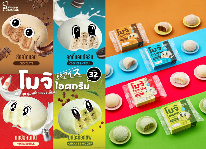 มิสเตอร์ โดนัท ผู้นำตลาดโดนัทเมืองไทย บริหารงานโดย บริษัท เซ็นทรัล เรสตอรองส์ กรุ๊ป จำกัด (ซีอาร์จี) เปิดตัวสินค้าใหม่ที่มากกว่าโดนัท กับครั้งแรก “โมจิ ไอศกรีม”กัดสนุก นุ่มหนึบ อร่อยเต็มคำ! ที่จะทำให้หน้าร้อนนี้ของคุณสดชื่นได้ในพริบตากับเมนูใหม่ที่ทำให้คุณอร่อยได้ครบ จบ ทันที่ในร้านมิสเตอร์ โดนัท เจาะกลุ่มลุกค้าทุกเพศทุกวันที่ต้องการเติมความสดชื่นแบบเร่งด่วน อร่อย กินง่าย พกพาสะดวก มีให้เลือกถึง4 รสชาติ ไม่ว่าจะเป็น นมฮอกไกโด ช็อคโกแลต คุ้กกี้แอนด์ครีม และมัทฉะช็อกชิพในราคาเพียง32 บาทเท่านั้น ได้แก่