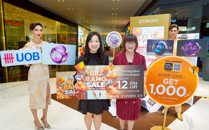 นางสุมา วงษ์พันธุ์ ผู้ช่วยกรรมการผู้จัดการใหญ่ บริษัท ไอคอนสยาม จำกัด เผยว่า ไอคอนสยามในฐานะ Global Experiential Destination ได้รับการตอบรับจากนักท่องเที่ยวทั้งชาวไทยและต่างชาติอย่างต่อเนื่อง หลังจากจบเทศกาลสำคัญที่ผ่านมา ทำให้ยอดการใช้จ่ายในไตรมาสแรกของปีเติบโตอย่างมีนัยสำคัญ เพื่อรักษาโมเมนตัมดังกล่าว และตอกย้ำบทบาทในฐานะแม่เหล็กเศรษฐกิจการท่องเที่ยว ไอคอนสยาม จึงร่วมกับ ธนาคารยูโอบี ประเทศ ไทย จัดแคมเปญ ‘ICONSIAM BIG BANG SALE 2025’ ระเบิดปรากฏการณ์ที่สุดแห่งความคุ้ม มอบสิทธิประโยชน์สูงสุดแก่ลูกค้า โดยเฉพาะสมาชิก ONESIAM ด้วยโปรโมชั่นที่คุ้มค่าเหนือความคาดหมาย ทั้งการรับ E-Cash Coupon มูลค่า 1,000 บาท เมื่อช้อปครบ 1,000 บาทสำหรับลูกค้าใหม่ และส่วนลดจากร้านค้าชั้นนำสูงสุดถึง 80%รวมมูลค่าของรางวัลและสิทธิพิเศษกว่า 12 ล้านบาทและพิเศษ!วันที่ 8พฤษภาคม2568 สำหรับสมาชิก ONESIAM Black & Titaniumสามารถช็อปก่อนใครกับ ONESIAM Black & TitaniumPrestige Day วันเดียวเท่านั้น รับเพิ่มรวมสูงสุดกว่า40,000.-