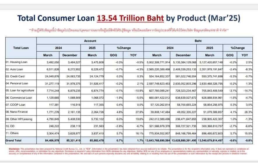 เครดิตบูโร เปิดเผย ภาวะหนี้สินครัวเรือน ณ ไตรมาส 1 ปี 2568 ในระบบของเครดิตบูโร จำนวน 13.5 ล้านล้านบาท โดยสินเชื่อครองสัดส่วนมากสุด 3 อันดับแรก คือ