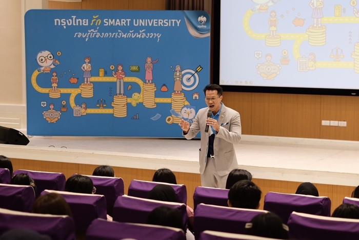 ธนาคารกรุงไทย ในฐานะธนาคารพาณิชย์ชั้นนำของประเทศ ให้ความสำคัญกับการสนับสนุนคนไทยเข้าถึงผลิตภัณฑ์และบริการทางการเงินที่ตอบโจทย์อย่างทั่วถึง พร้อมเสริมสร้างทักษะในการจัดการทางการเงินให้กับลูกค้าประชาชนทุกกลุ่ม โดยเฉพาะกลุ่มเยาวชนที่เป็นกำลังสำคัญในการขับเคลื่อนเศรษฐกิจของประเทศในระยะข้างหน้า โดยธนาคารมุ่งมั่นเสริมสร้างทักษะในการบริหารจัดการทางการเงินให้กับเยาวชนไทยผ่านโครงการ “กรุงไทยรัก Smart University” ภายใต้โครงการกรุงไทยรักชุมชน เพื่อให้ความรู้ทางการเงิน (Financial Literacy) ร่วมกับการสร้างวินัยและวางแผนทางการเงินที่ดี การใช้เครื่องมือทางการเงินได้อย่างมีประสิทธิภาพ ตลอดจน สร้างการตระหนักรู้ถึงภัยทางการเงิน ทั้งการสร้างความเข้าใจและให้รู้เท่าทันมิจฉาชีพ ป้องกันการตกเป็นเหยื่อของอาชญากรรมออนไลน์ โดยธนาคารเชื่อมั่นว่า องค์ความรู้เหล่านี้ จะเป็นการสร้างรากฐานที่แข็งแกร่งในการบริหารจัดการการเงินให้มั่นคงและยั่งยืน เป็นเกราะป้องกันที่ช่วยให้เยาวชนสามารถบริหารจัดการการเงินได้อย่างมั่นใจ พร้อมรับมือกับความท้าทายทั้งในปัจจุบันและอนาคต