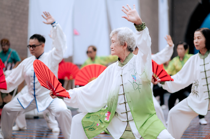 อาจารย์วชิรา พงศาวกุล อายุ 77 ปี อดีตครูมัธยมและปัจจุบันยังคงดูแลสุขภาพอย่างแข็งแรงด้วยการรำไทเก๊ก เล่าถึงเหตุผลที่เข้าร่วมเป็นสตาฟอาสาสมัครในงานนี้ว่า “รู้สึกดีใจมากที่ผู้จัดงานให้ความสำคัญกับผู้สูงอายุ พอทราบว่ามีโอกาสเข้าร่วมเป็นสตาฟก็รู้สึกเหมือนได้มีคุณค่าอีกครั้ง โดยรับหน้าที่คีย์รายชื่อแทนเครื่องสแกน ไม่เหนื่อยเลย แต่สนุกและภูมิใจที่สุดที่ได้มีส่วนร่วมในงานระดับนานาชาติแบบนี้ สุขภาพที่ดีของตัวเองเกิดจากการมองโลกในแง่ดี กินอร่อย นอนหลับสบาย และที่สำคัญคือได้รำไทเก๊กกับเพื่อน ๆ ที่เข้าใจกัน ได้สังคมดี ๆ มาเติมเต็มใจในวัยเกษียณ”