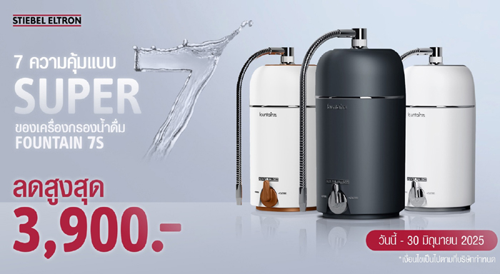 สตีเบล เอลทรอน (Stiebel Eltron) ตอบรับเทรนด์การดูแลสุขภาพและความต้องการเครื่องกรองน้ำดื่มของผู้บริโภคชาวไทยช่วงฤดูฝน พร้อมรุกตลาดเครื่องกรองน้ำดื่มที่เติบโตต่อเนื่องในประเทศไทย ด้วยแคมเปญ “Super 7 of FOUNTAIN 7S” ชู 7 จุดเด่นด้านประสิทธิภาพ ความปลอดภัย และความคุ้มค่าของเครื่องกรองน้ำดื่มรุ่น FOUNTAIN 7S เพื่อกระตุ้นยอดขายเครื่องกรองน้ำของบริษัทฯ พร้อมกันนี้ยังจัดโปรโมชันส่วนลดสินค้ารุ่นดังกล่าว 3,900 บาท ผ่านทุกช่องทางจำหน่าย ตั้งแต่วันนี้ – 30 มิถุนายน 2568