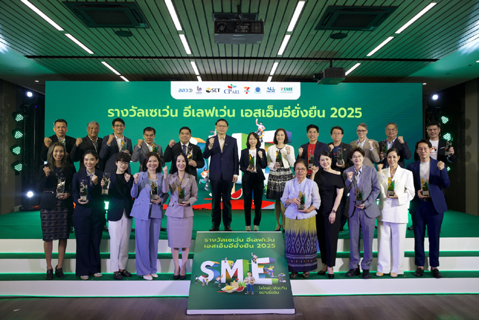 “เซเว่น อีเลฟเว่น” ผนึก 3 พันธมิตรระดับประเทศ “กสอ.-สสว.-ตลาดหลักทรัพย์ฯ” จัดงานมอบรางวัล “เซเว่น อีเลฟเว่น เอสเอ็มอียั่งยืน 2025” อย่างยิ่งใหญ่ต่อเนื่องปีที่ 8 ตอกย้ำความสำเร็จเหล่าผู้ประกอบการ SME ไทย 18 ราย จาก 10 ประเภทรางวัล ที่มุ่งยกระดับสินค้าในหลากหลายมิติทั้งเศรษฐกิจ สังคม และสิ่งแวดล้อมอย่างยั่งยืน เผยกลุ่ม SME อาหารไทยมาแรง น้ำพริกป้าแว่น-น้ำพริกมินิรุ่งเจริญ-น้ำพริกเอมโอชา กอดคอคว้ารางวัลยั่งยืน-รางวัลดาวรุ่ง พร้อมดึง “ซีเค เจิง” จัด Special Talk ติดอาวุธความรู้ SME ไทย ปั้นสินค้าสู่ตลาดโลก