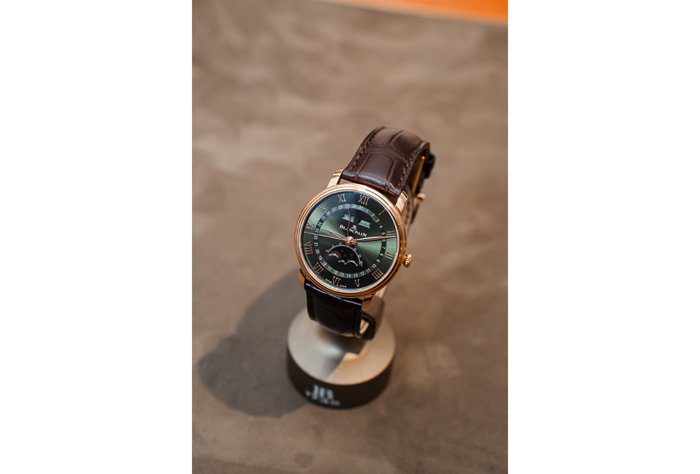 ถัดมาดื่มด่ำกับความประณีตของ BLANCPAIN ชั้น 1 ที่นำเสนอความงดงามได้รับแรงบันดาลใจจากธรรมชาติของผืนป่าสนแห่งหุบเขา Vallée de Joux กับ Villeret Quantième Complet หน้าปัดสีเขียวเข้มดุจมวลหมู่ต้นสน ขัดแต่งลวดลาย Sunburst อย่างประณีต สะท้อนถึงรากฐานและประวัติศาสตร์อันยาวนานของแบรนด์จากเมือง Le Brassus สู่เรือนเวลาที่เรียบง่ายแต่เปี่ยมด้วยเสน่ห์เหนือกาลเวลา และ Ladybird Colors Phases de Lune เรือนเวลาสำหรับสุภาพสตรีที่ผสานความอ่อนหวานของสีสันเข้ากับความซับซ้อนของกลไกข้างขึ้นข้างแรมได้อย่างลงตัว ซึ่งนาฬิกาทั้งสองรุ่นนี้เอ็กซ์คลูซีฟเฉพาะที่เซ็นทรัล เอ็มบาสซี