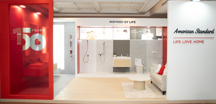 บูธ American Standard เฉลิมฉลอง 150 ปีแห่งความไว้วางใจและนวัตกรรมที่ได้รับแรงบันดาลใจจากชีวิต แขกที่มาร่วมงานได้ร่วมชมคอลเล็กชัน Acacia Supasleek ใหม่ และผลิตภัณฑ์ที่ได้รับการออกแบบอย่างมีจุดมุ่งหมาย เช่น สายฉีดชำระ DuoStix คอลเล็กชัน EasyFlo โถสุขภัณฑ์แบบติดผนัง Aero-lite และฝักบัว WizFlo ใหม่