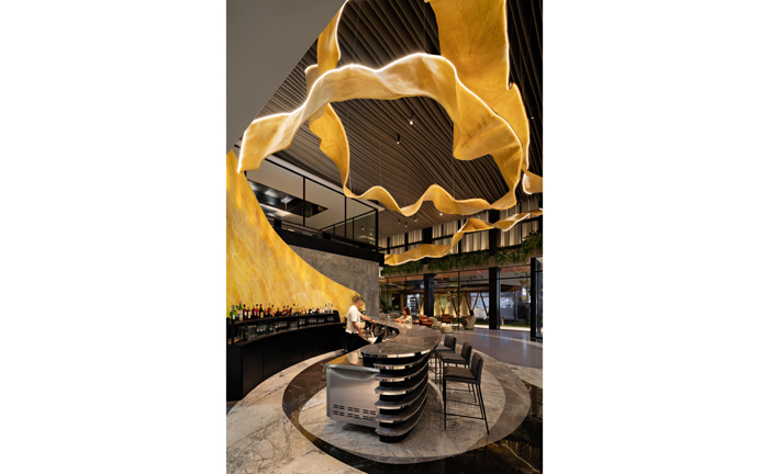 ภายในงาน Stone Experience Center – MM Galleri by CNS Designworks จากอินโดนีเซีย ได้รับรางวัล GROHE Luxury Award ซึ่งสะท้อนแนวคิด “New Luxury” การผสมผสานระหว่างดีไซน์อันประณีตและการตกแต่งภายในสุดหรู เข้ากับคุณค่าด้านความรับผิดชอบต่อสังคม การบริโภคอย่างมีสติ และความยั่งยืน Stone Experience Center เป็นพื้นที่นวัตกรรมที่พลิกโฉมการใช้หินธรรมชาติในงานออกแบบร่วมสมัย โดยนำเสนอวิธีใหม่ในการใช้หินอ่อนและโอนิกซ์ให้กลายเป็นองค์ประกอบสถาปัตยกรรมที่บาง เบา และลื่นไหลอย่างสง่างาม ด้วยเทคโนโลยีล้ำสมัย แผ่นหินบางพิเศษเหล่านี้ถูกดัดโค้งเป็นรูปทรงที่พลิ้วไหว โดยใช้วัสดุเพียง 10% ของปริมาณเดิม และลดของเสียได้ถึง 70% ถือเป็นการกำหนดมาตรฐานใหม่ของการใช้ทรัพยากรอย่างคุ้มค่าและการผลิตที่เป็นมิตรต่อสิ่งแวดล้อม