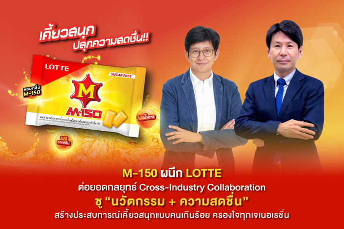 บริษัท โอสถสภา จำกัด (มหาชน) โดยแบรนด์ ‘M-150’ เครื่องดื่มบำรุงกำลังอันดับหนึ่งของไทย เดินหน้ากลยุทธ์ Cross-Industry Collaboration จับมือ ‘LOTTE’ แบรนด์หมากฝรั่งชั้นนำจากญี่ปุ่น เปิดตัวความร่วมมือครั้งใหม่กับผลิตภัณฑ์ “หมากฝรั่ง LOTTE x M-150 กลิ่นผลไม้รวม” ในรูปแบบ Coated Gum ปราศจากน้ำตาลและคาเฟอีน ภายใต้แนวคิด “เคี้ยวสนุก ปลุกความสดชื่น” ตอบโจทย์ผู้บริโภคยุคใหม่ที่มีไลฟ์สไตล์แอคทีฟ ต้องการความสดชื่นระหว่างวันในรูปแบบที่สะดวก พกพาง่าย และเข้าถึงได้ทุกที่ โดยยังคงกลิ่นและรสชาติอันเป็นเอกลักษณ์ของ M-150 พร้อมขยาย Brand Experience ของ M-150 สู่กลุ่มขนมขบเคี้ยว เพิ่มประสบการณ์ความสดชื่นในรูปแบบ “เคี้ยวได้” ให้กับผู้บริโภคทุกเพศทุกวัย สะท้อนความมุ่งมั่นของแบรนด์ในการอยู่เคียงข้างผู้บริโภคในทุกจังหวะของชีวิต ไม่เพียงในฐานะเครื่องดื่มบำรุงกำลัง แต่เป็นนวัตกรรมที่สอดคล้องกับวิถีชีวิตและความต้องการที่เปลี่ยนแปลงไปในแต่ละยุคสมัย