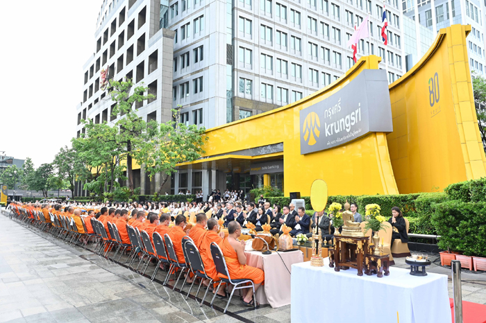 นายโนริอากิ โกโตะ ประธานกรรมการ และ ดร. จำลอง อติกุล รองประธานกรรมการ พร้อมด้วยคณะกรรมการ ผู้บริหาร และพนักงาน ธนาคารกรุงศรีอยุธยา จำกัด (มหาชน) ร่วมพิธีทำบุญตักบาตรพระสงฆ์ 81 รูป ที่บริเวณด้านหน้าอาคารกรุงศรี สำนักงานใหญ่ พระรามที่ 3 ในโอกาสครบรอบ 80 ปี เมื่อวันที่ 1 เมษายน 2568 ในโอกาสนี้ ธนาคารได้รับเมตตาจากพระพรหมบัณฑิต กรรมการมหาเถรสมาคม และพระสงฆ์จากอารามหลวง วัดพระเชตุพนวิมลมังคลารามราชวรมหาวิหาร และวัดประยุรวงศาวาส เพื่อประกอบพิธีเจริญพระพุทธมนต์ และถวายภัตตาหาร